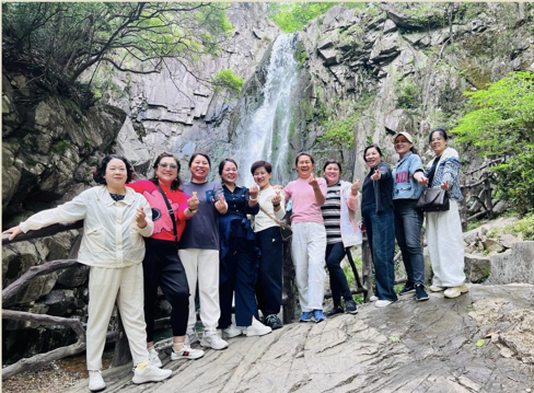 第二站是浙北大峡谷,峡谷内山峦叠嶂、溪流潺潺,自然风光十分秀丽。在导游的带领下,我们沿着蜿蜒的山路前行,沿途欣赏到了形态各异的奇石、潺潺的溪流和壮观的瀑布。这些自然景观不仅令人叹为观止,更让我们深刻感受到了大自然的鬼斧神工和生命的顽强力量。途中大家互相鼓励,共同克服困难,攀登到了最顶峰,这不仅增强了团队的凝聚力,也让我们更加坚定了理想信念,只有团结一心、勇往直前,才能战胜前进道路上的各种挑战。
